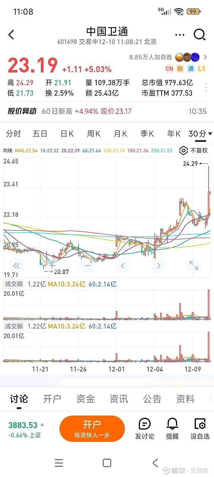 $中国卫通(SH601698)$