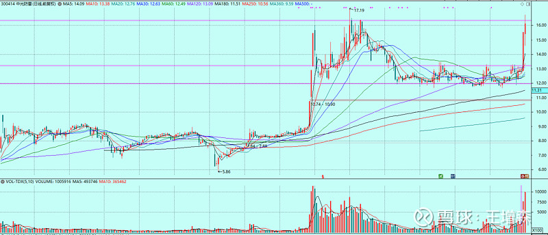 一、 $中光防雷(SZ300414)$ 前天关注,昨天涨停,今天到顶。