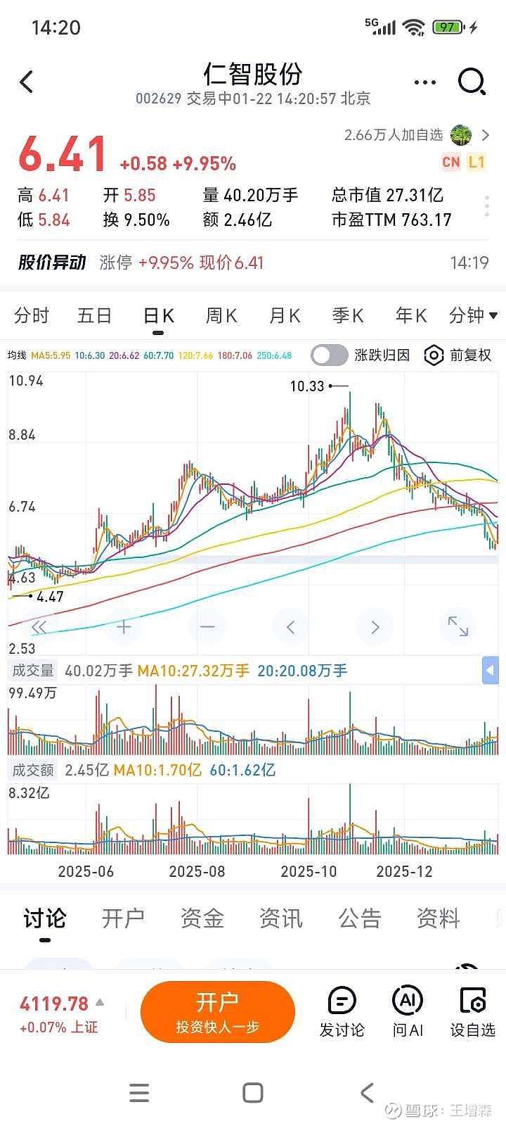 $仁智股份(SZ002629)$