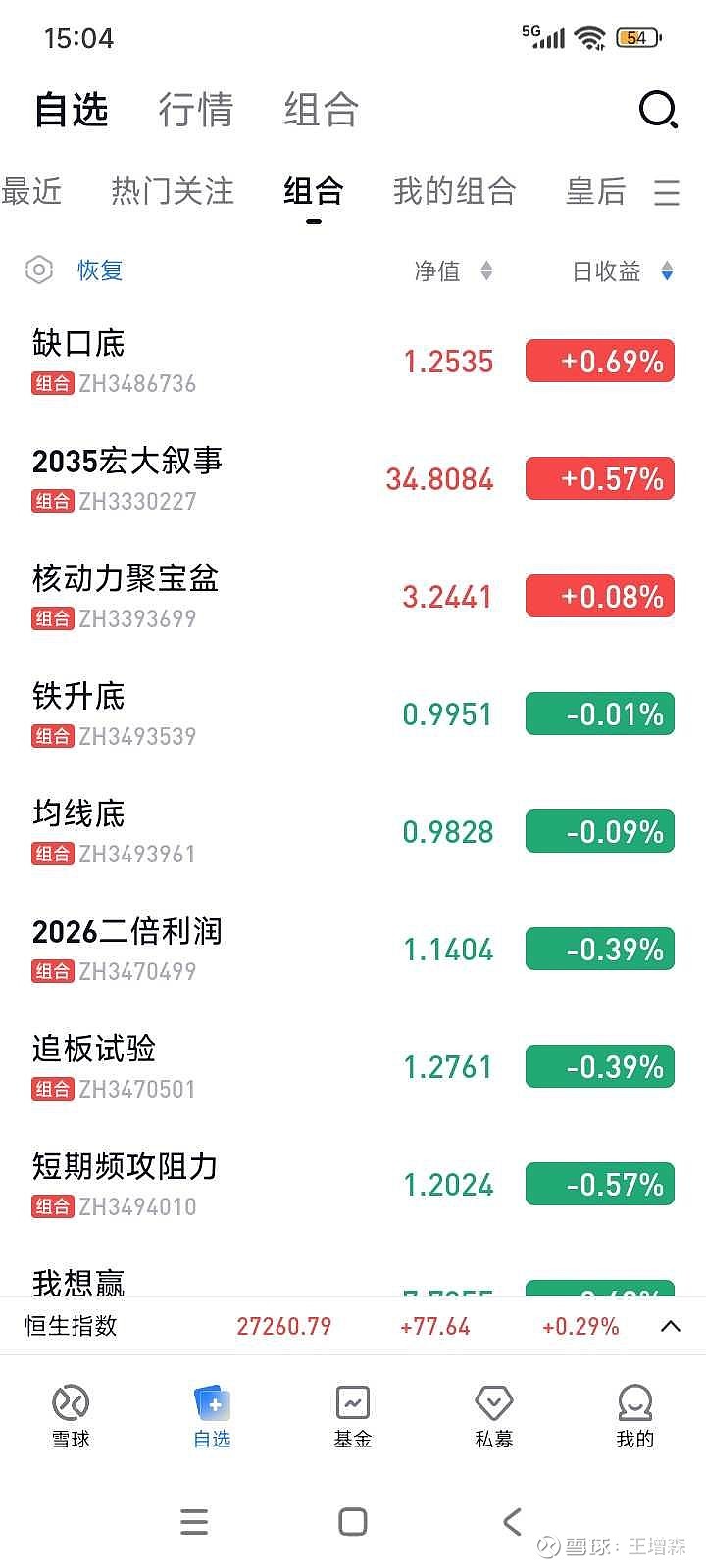 组合现在数据不准。但也能大体反应今天的情况。大多有小幅回撤。
