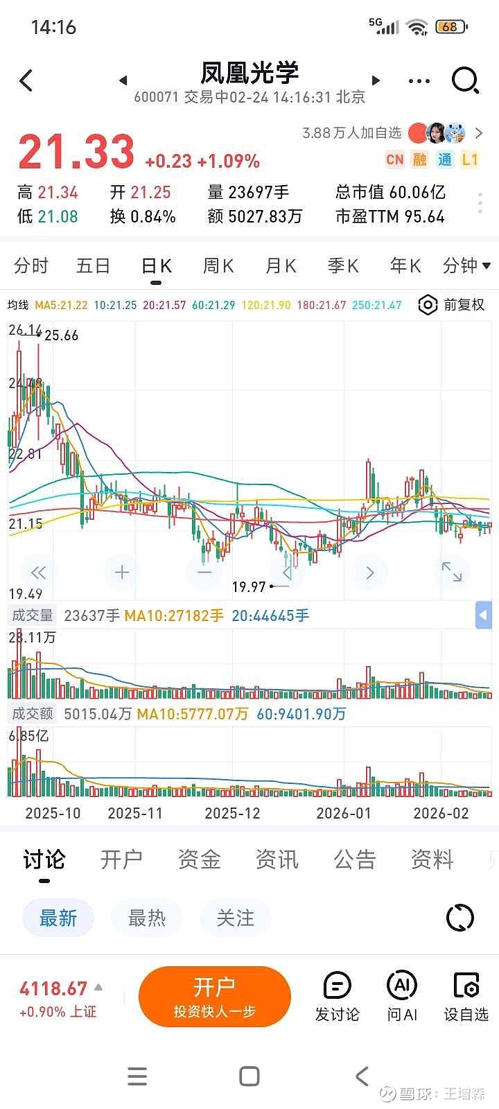 $凤凰光学(SH600071)$