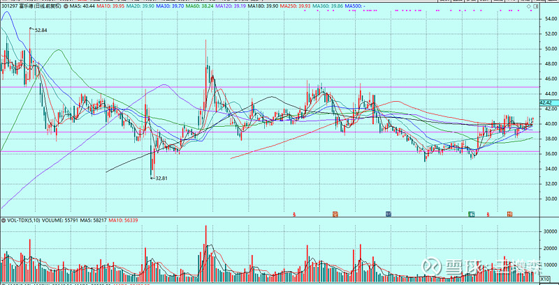 $富乐德(SZ301297)$ 还在之前画的区间内。不过,进入39往上的强阻力区间,出现三底。“不见三不下单”。三底就敢试试做多。