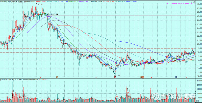 $广州酒家(SH603043)$ 长期盘底升底的股票都有发飙的机会。19附近有多顶底,阻力位强,到了就回调很正常。
