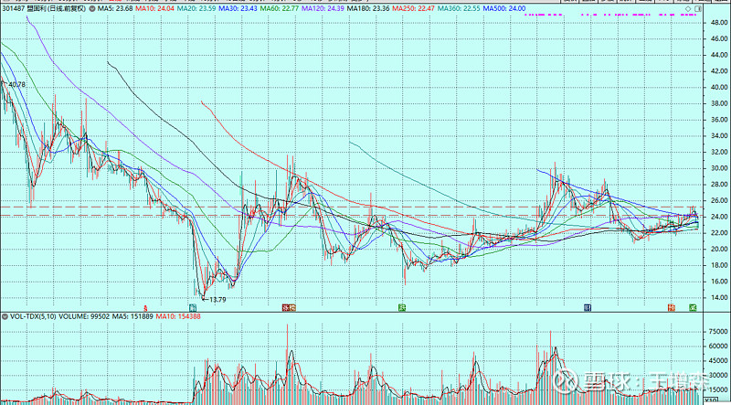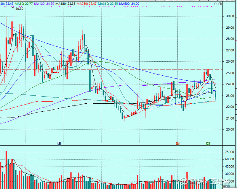 22.5附近,三条长期均线,60+250+360 日线。这个位置大概率应该可以试试做多。