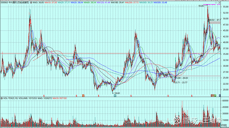 中兴通讯已经到了支撑位。一看线的颜色,知道是前年画的线,现在依旧起作用。
