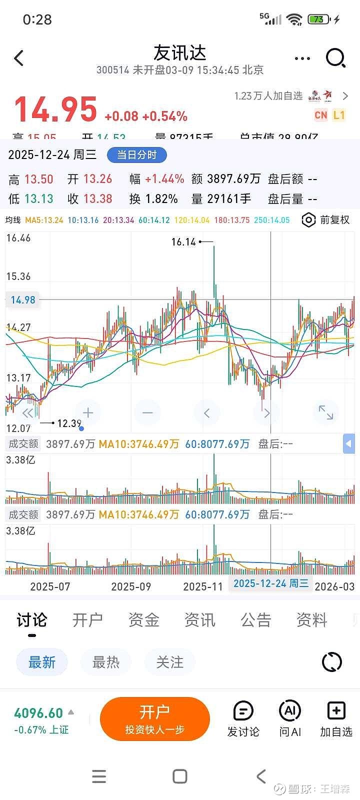 $友讯达(SZ300514)$ “前顶附近不轻易看多”。我有多次再前顶附近看多,被打脸。高开缺口三天不回补,还有理由继续看多。有仓还可以继续观望。也不反对轻微仓试试运气。股指这几天不大好,对他没有太大影响。逆股指的都值得试试。