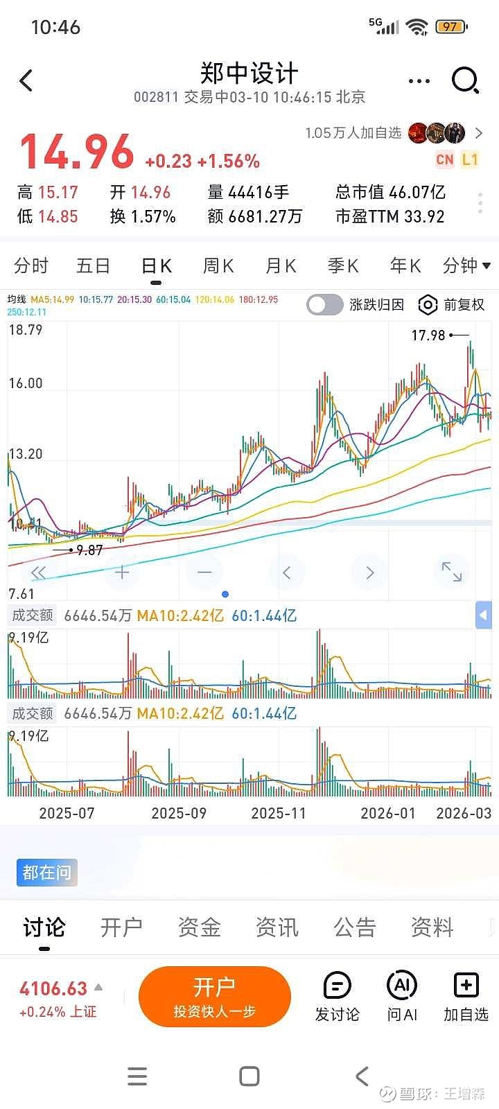 “敬畏历史”。“量价匹配的好股票要看量操作”。每次突兀放量都回调了。“前底附近不轻易看空”。现在位置可以等待盘底确认底部再操作。