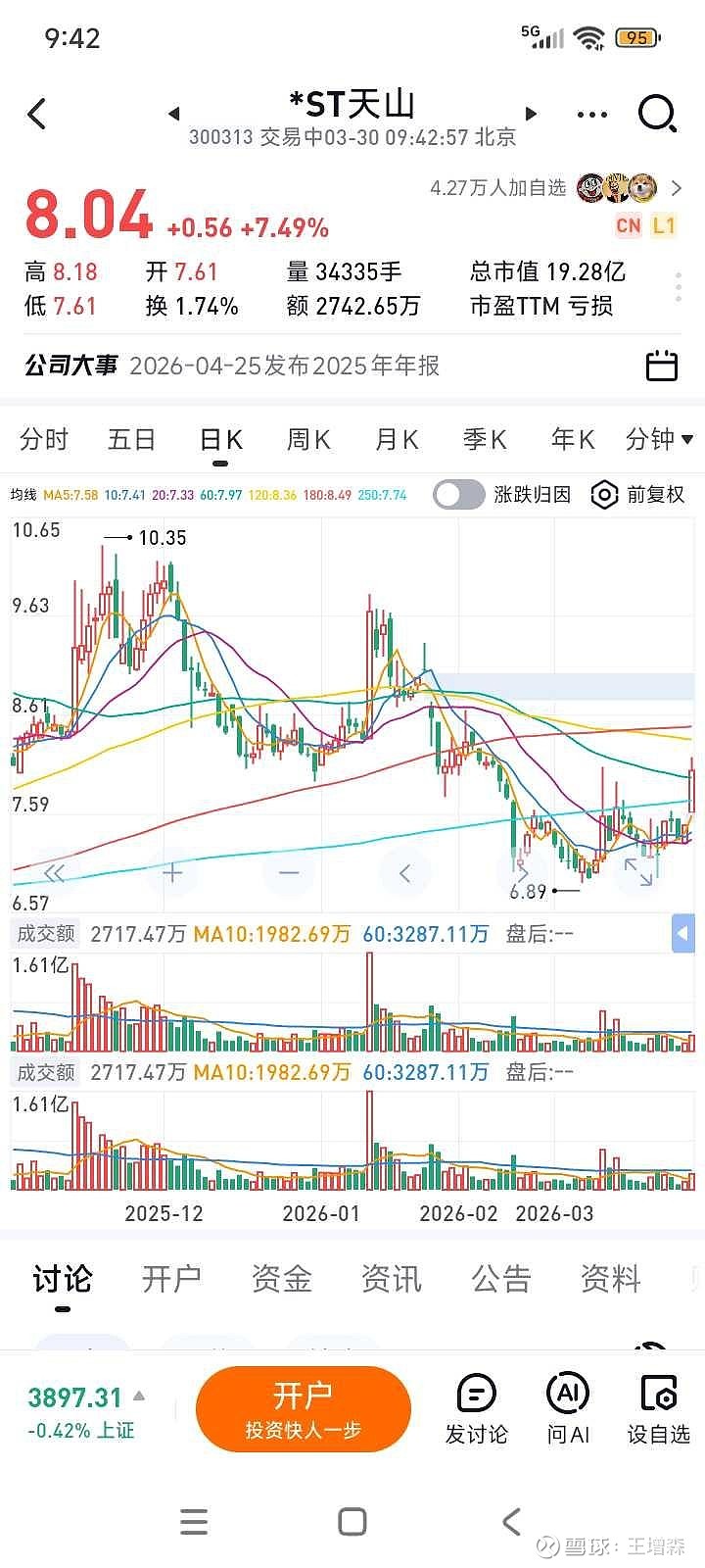 $*ST天山(SZ300313)$