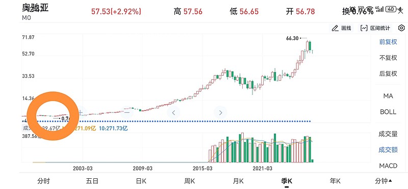 中国高端白酒的股价位置相当于2000年的奥驰亚,图中划圈的地方,产业成熟度还不到2000年的奥驰亚(品牌中药的产业成熟度比白酒还要晚二十年),但这个图就这么长,2000年一季度纳斯达克见顶,奥驰亚同步见底,后面又是一个百倍牛市的回报。#股市# #白酒# #品牌中药#