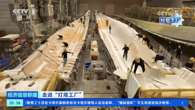 总台央视记者 杨紫薇:我们现在所处的位置就是湖南韶山的这家叶片工厂了,在我手边的这些大家伙就是风机叶片。在这座灯塔工厂内最长可以生产大约118米的叶片。平均像这样的一支百米级叶片,它的生产时间从原来的40多个小时缩短到了现在的大约30个小时。