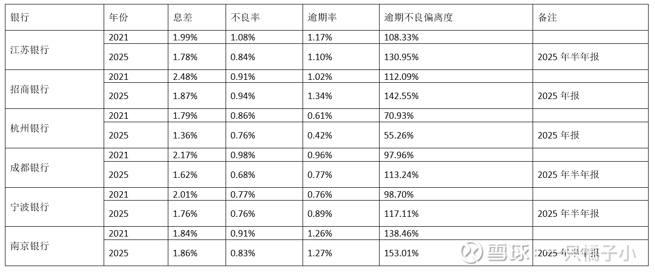 杭州银行2025年末不良率0.76%,逾期率仅0.42%,逾期/不良贷款比仅55.26%,不仅全部逾期均纳入不良,且不良中还包含相当部分是未逾期贷款,与招行及同业相比,认定尺度显著更严,审慎程度遥遥领先。