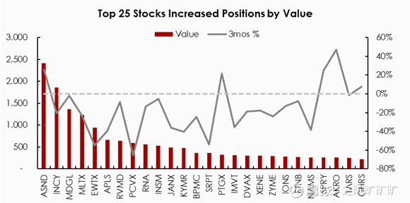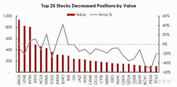如果看减仓标的,by value top1是argx, aclx也在前面,大票里bsx跟isrg被减仓很多