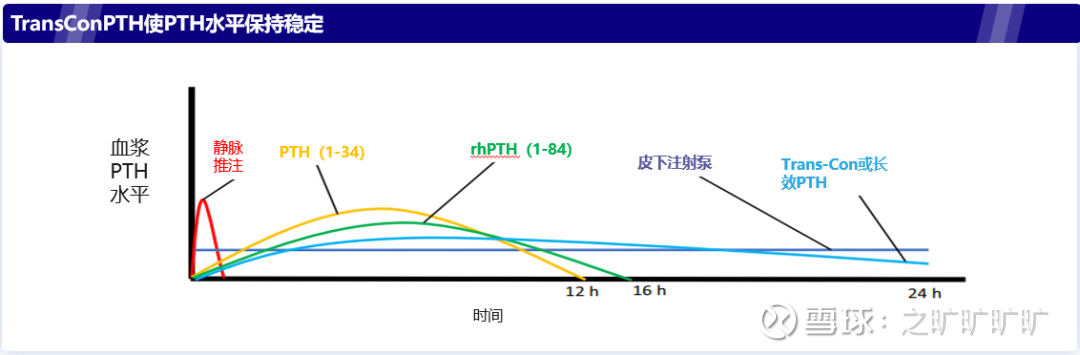 以PTH为例,对于甲状旁腺功能减退症 (HP),目前已有的甲状旁腺素 (PTH 1-34) 皮下注射后,因其半衰期较短,呈现间歇性波动的药代动力学特征,因而只能发挥PTH的促骨形成作用,无法实现HP患者的激素替代治疗