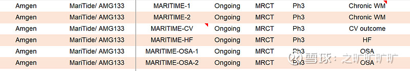 差点忘了还有你:$安进(AMGN)$ 给长效MariTide开了6个ph3,现在老哥改叫chronic weight management,给QW后的患者一个机会,你还有Q8W/ Q12W的maintenance选择;除了MariTide外,amgn还有个AMG513,机制未知