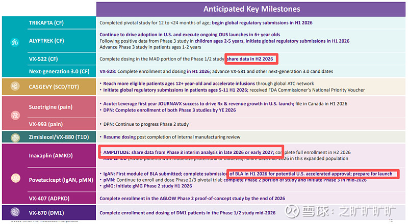 $福泰制药(VRTX)$ 核心产品CF rev 3.1b, yoy +7.1%,还算是相对稳健;journavx 27m, 基因疗法casgevy 54m, 都是slightly miss (不过市场关注点已不在这块)
