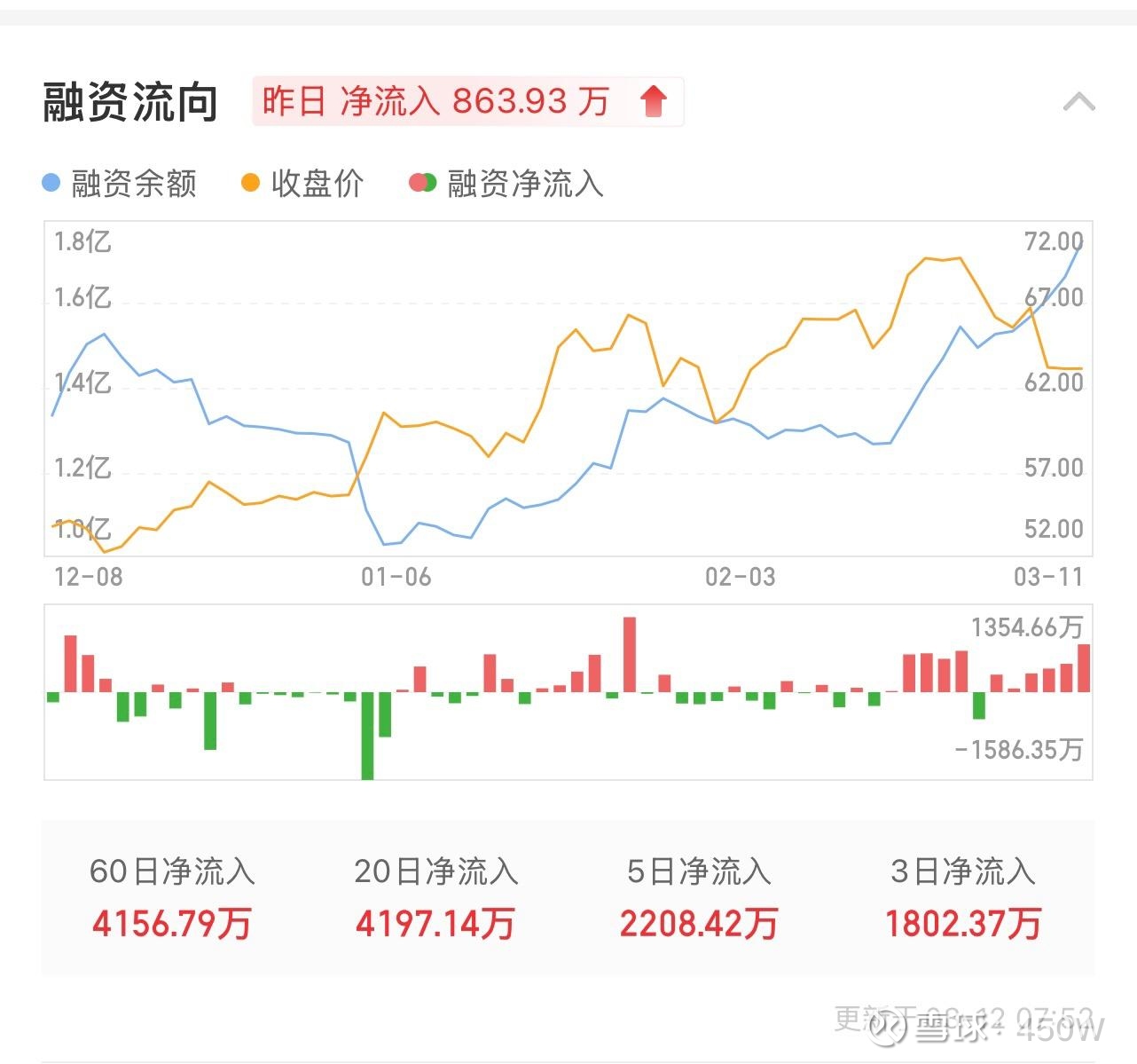 $密尔克卫(SH603713)$ 有一个点,我不够明白,望有网友能帮忙解释一下,可能我们都忽略的密尔克卫多日融资的净流入,可以说跟股价的下跌背道而驰。我理解的话,这票很可能主要是机构票,但是按理融资买入的不可能是机构,更像是散户。散户们这么看好地融资买入是为什么(怎么突然就这么热衷此股了)。那么这么多日的融资净流入怎么股价还是一路下行呢?虽然我猜这个下跌中前期持有和买入的应该确实大量卖出了。
