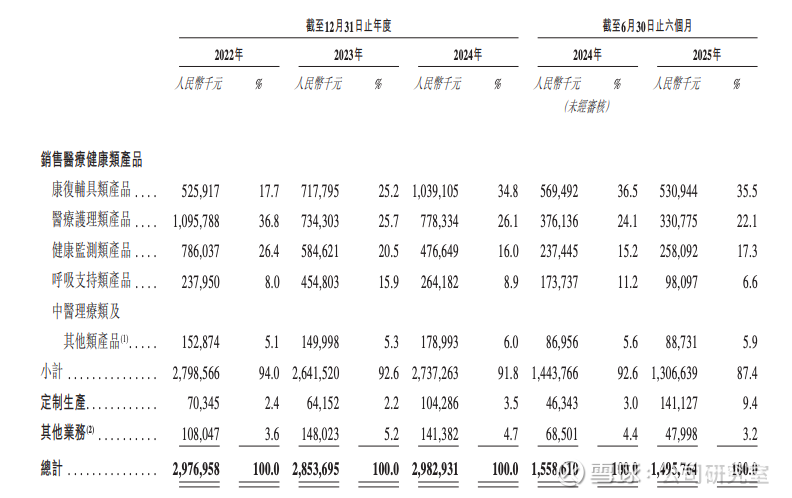 康复辅具类产品的收入从2022年的5.3亿元增长至2024年的10.4亿元,复合增速达到40%。不过,2025年上半年,该业务收入5.3亿元,同比下滑7.0%。