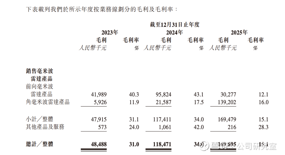 分产品来看,前向毫米波雷达毛利率曾维持高位,2023年和2024年分别为40.3%、43.1%,但2025年骤降至12.1%;而2023年到2025年,角毫米波雷达毛利率分别为11.9%、17.5%、16.0%,始终低于前向雷达,但凭借收入规模的爆发式增长,其毛利从592.6万元跃升至13.92亿元,成为拉动整体毛利增长的核心动力。