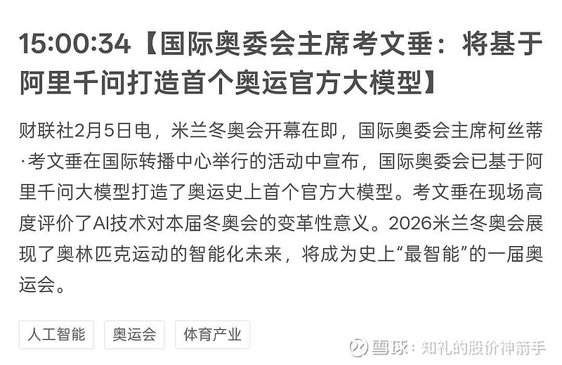 目前“AI+”热潮仍旧持续,奥运与AI强强联合,可以观察是否是开年关注点