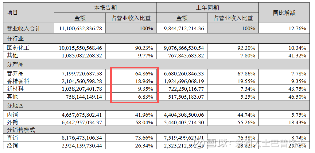 1. 营养品:占营收70%左右(随着公司发展新材料增长迅速,2025中报已经降为65%),维生素A/E、蛋氨酸都是全球前排;