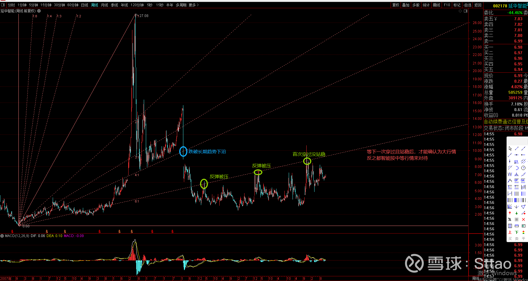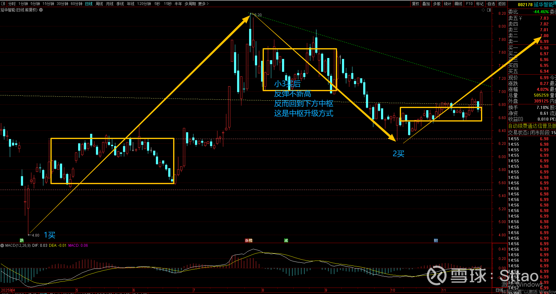 这里面有一个最重要的技术信号,如下图所示,中期行情的突破信号出现但还没有确认。
