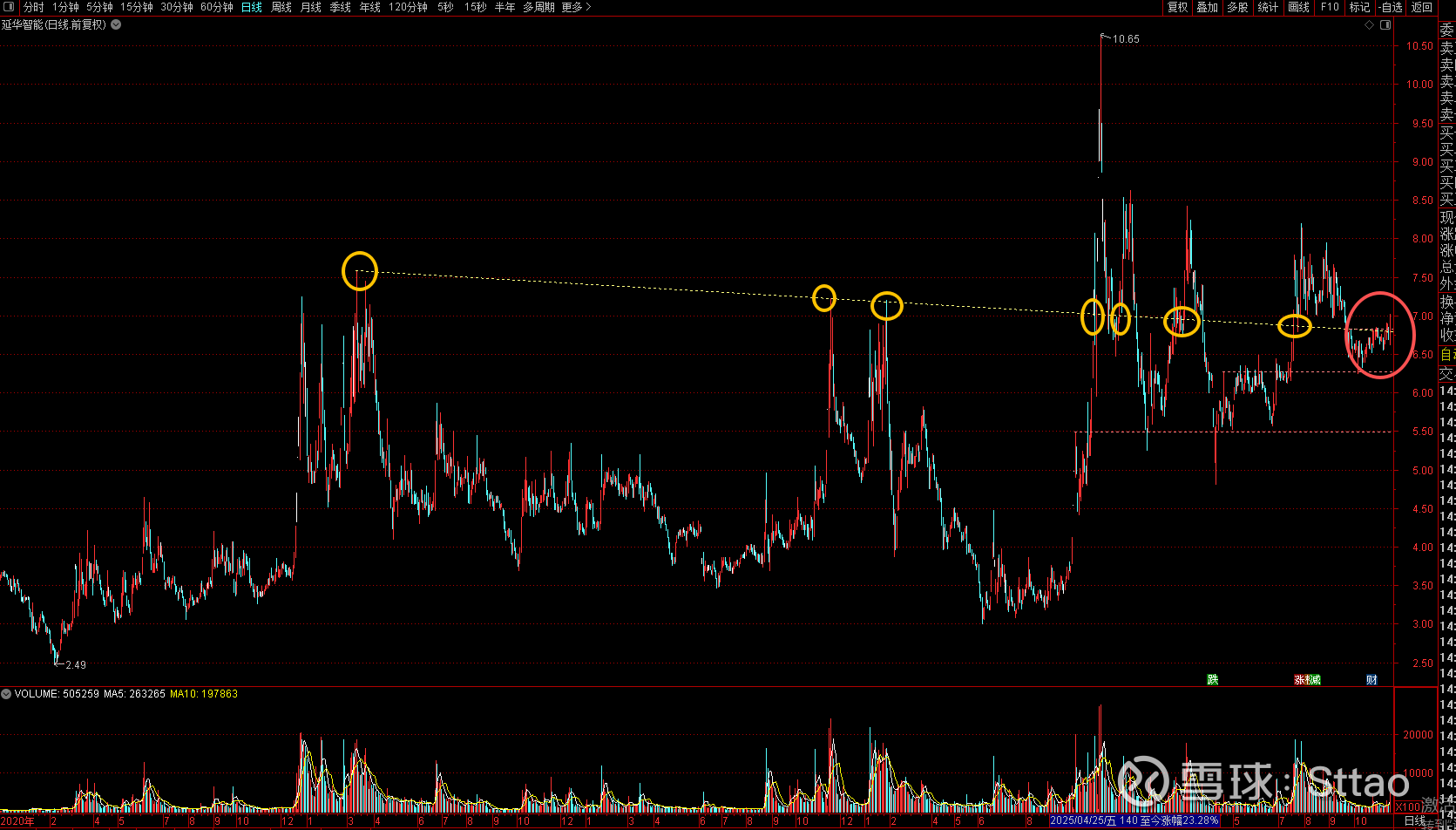 3、2025年这个大宗的平均成本在7.95-7.35元范围,可以作为一个中枢价格参考.2023年的大宗平均成本3.8元附近可以大概当初朱莉底仓成本来看,一般都会接近。只是个参考,没有实际核心意义,这种价格更多是来说服自己的,心理上影响更重要。