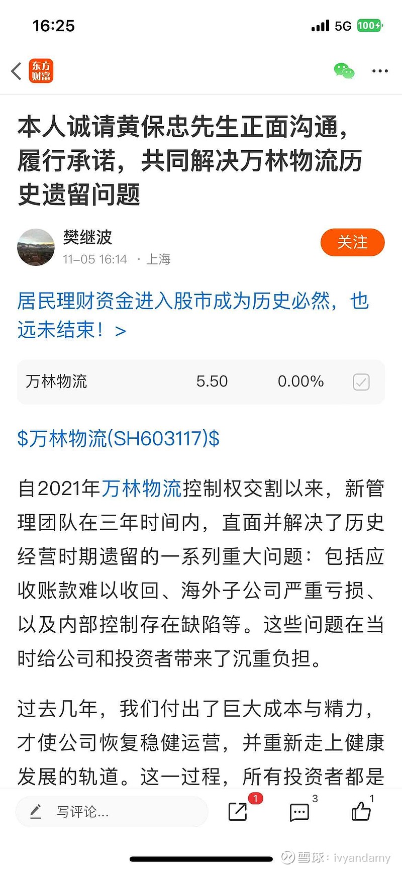 $万林物流(SH603117)$