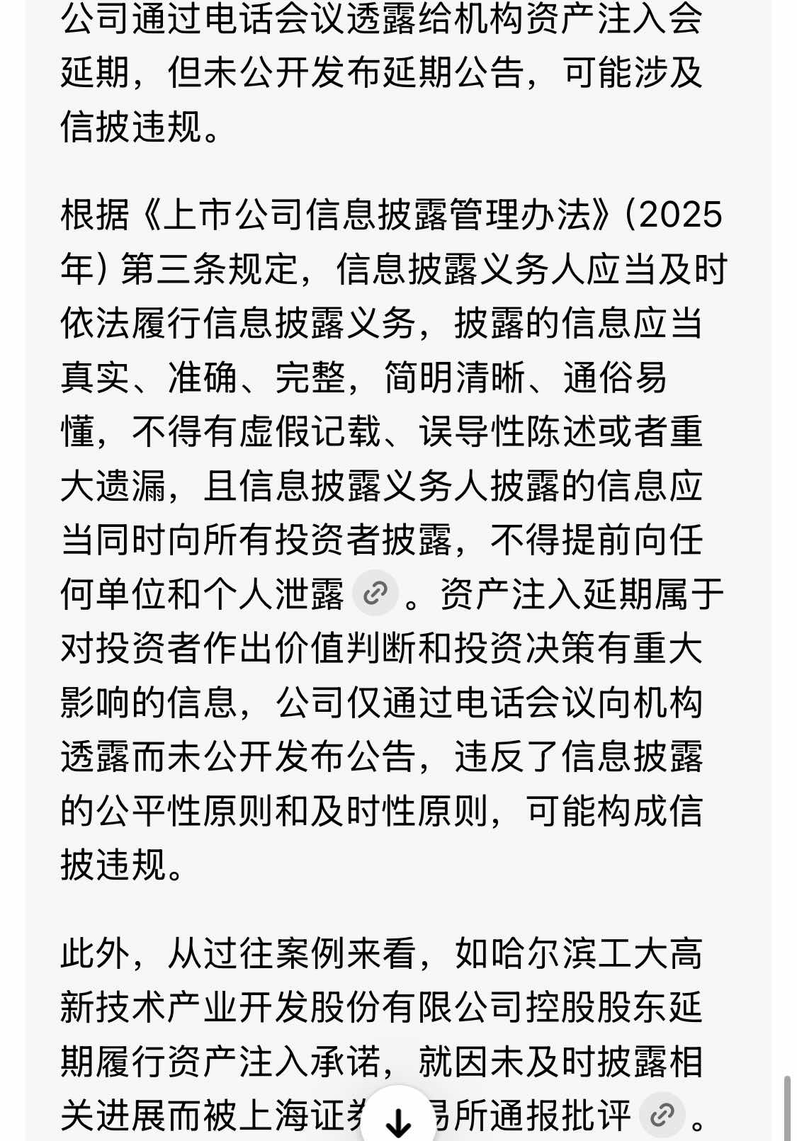 若资产注入得以兑现,则不存在信披违规,若资产注入延期,则可能存在信披违规。请自行判断。