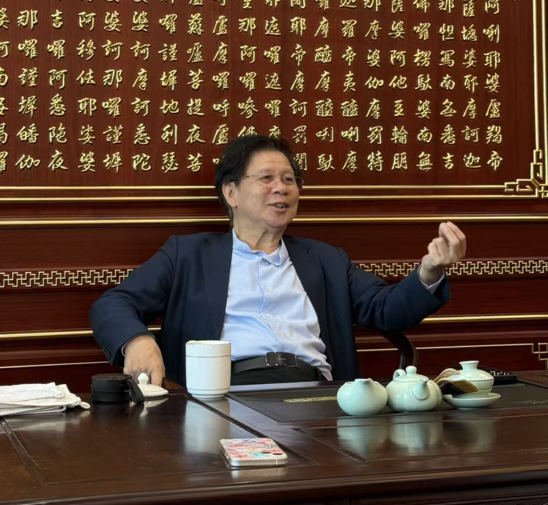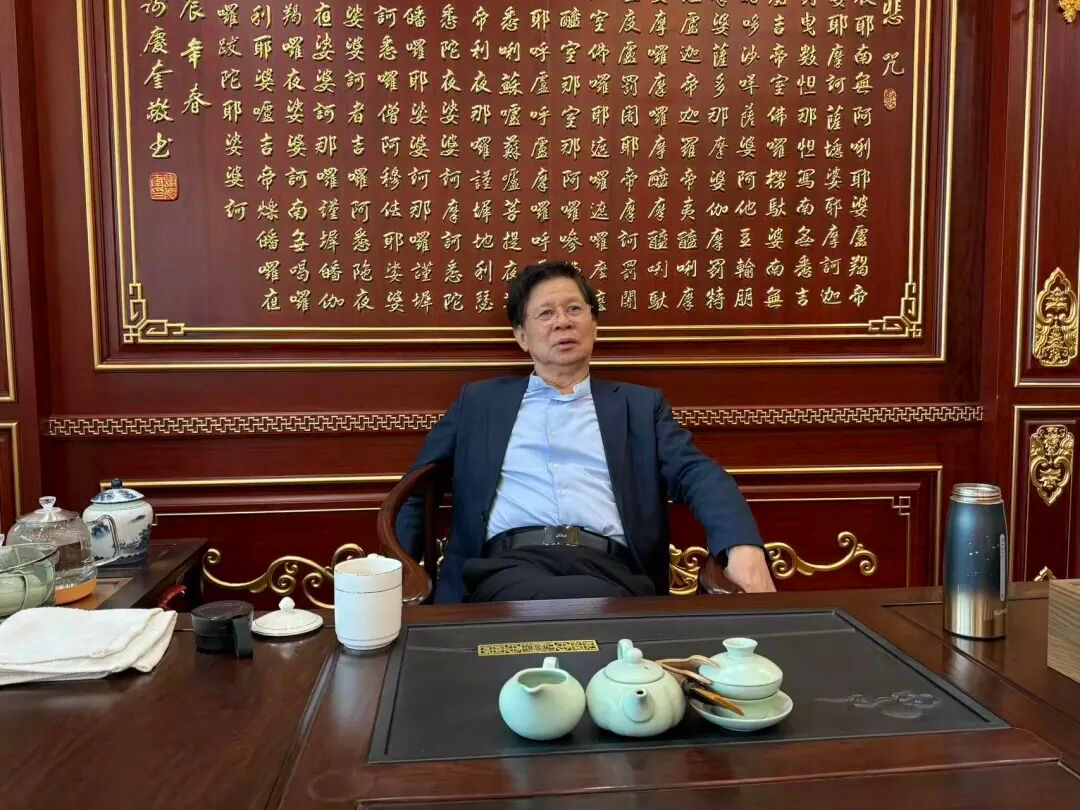西麦贺州工业园,每个走进他办公室的人,都会经过一条悬挂着长卷的走廊——那是他手抄的《金刚经》,五千多字,耗费七个长假的每日半天写成。