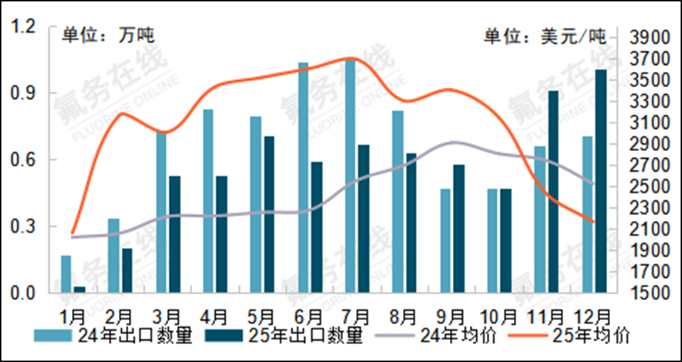 图一:2025年R22出口价格(引用自:氟务在线:年度汇总!2025年进出口数据最新出炉)