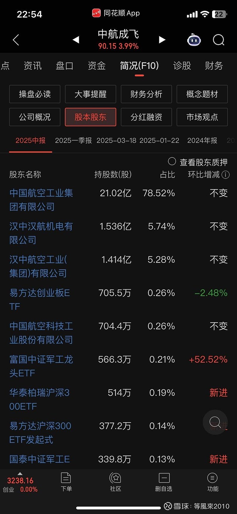 可能很多人没意识到一个问题 成飞的流通股极少 应该就两三亿股能够自由买卖 其他都在大股东手里 而且基本不会减持