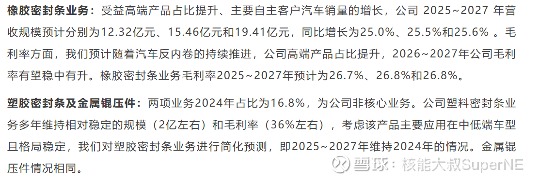 按照浙江仙通目前的产能爬坡进度,浙江仙通2025-2027的业绩预测相对简单,东兴证券的研报里的分析我认为相对合理。