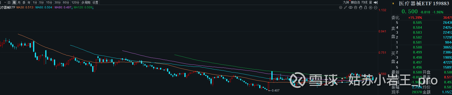 凌晨一点半,完成对最近医疗器械集采进度和信息更新的复盘后,我关掉电脑,准备休息。手机屏幕还亮着,当周涨跌幅-6.53%,医疗器械ETF的周线像一个绿色的石碑狠狠砸在60周线和120周线的交汇点。这时,整个苏州早已进入安眠,除了几个灯火通明的医院在24小时运转。