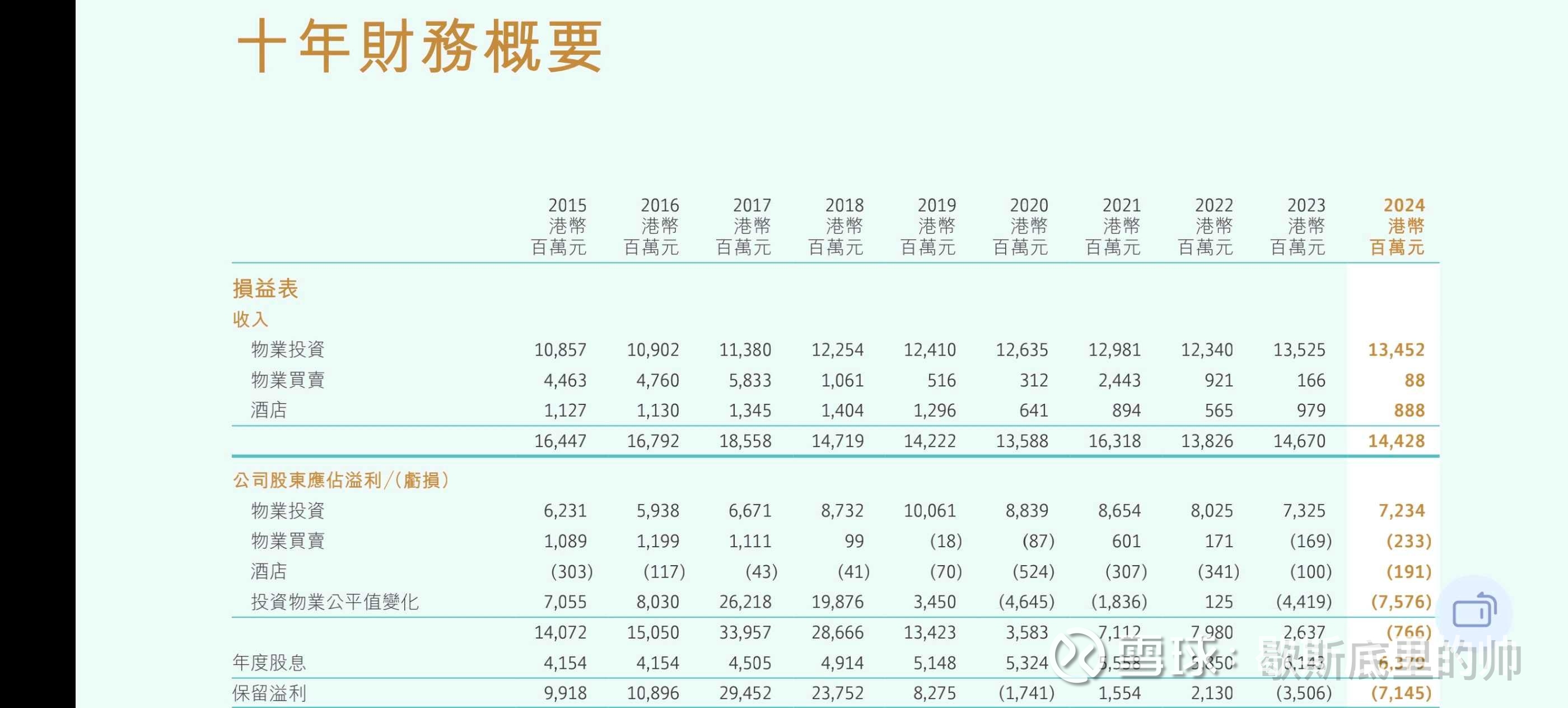 先上图,下图是$太古地产(01972)$ 过去十年财务数据: