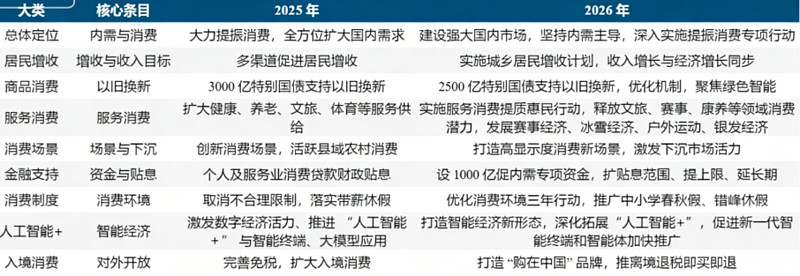 图:2026重要工作报告消费政策梳理