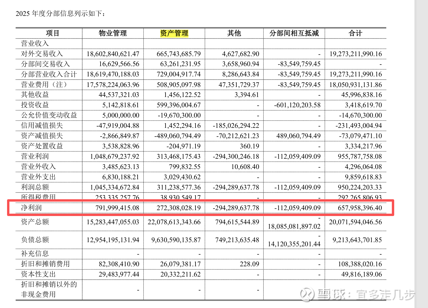 现在我们来算一算公司的底线价值,我打算把这一块拆成几部分,物管+资管+净现金,根据下表 物管是7.9亿,资管是2.72亿,其他-2.94亿,相互递减 (内部做账)-1.12亿,衡阳的一次性计提为2.56亿,这是基础数据;按照保守来算 物管的实际净利润为7.91-2.94-1.12+2.56=6.4亿,资管利润为2.72亿 ,合计9.1亿;