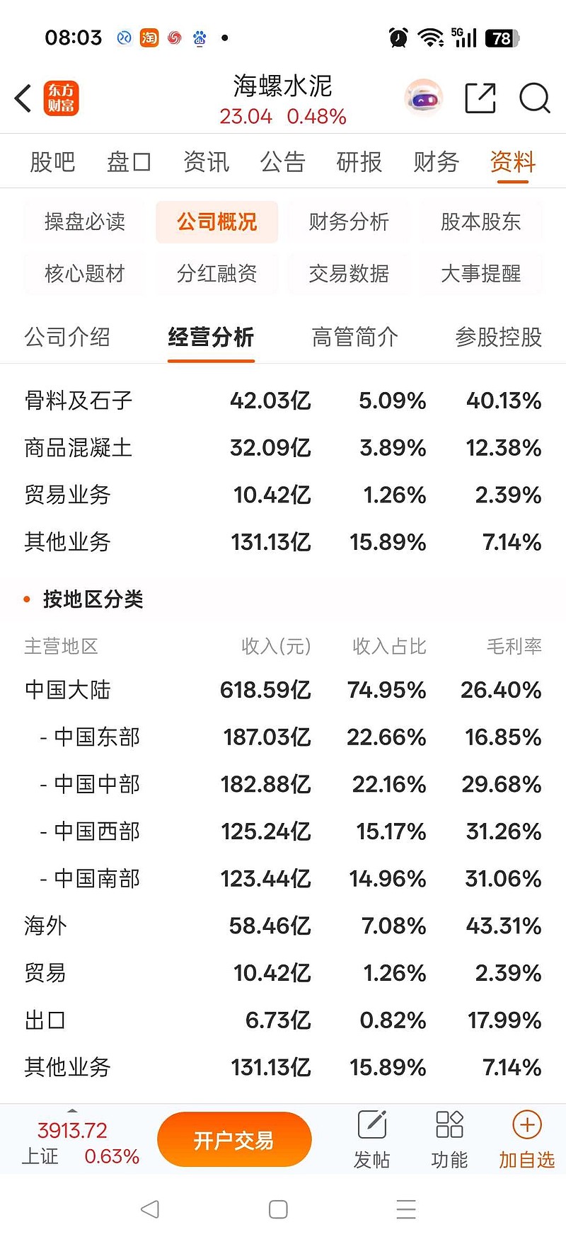 $海螺水泥(SH600585)$ 这是海螺个经营拆分,很多人看不到亮点,那就是海外市场占比和毛利进一步提高,实际上海螺不需要国内反转,不进一步下降就行了,海外市场可以带来新的增长,今年海外很多开始投产,28年营收占比突破20%,这种都会带来利润提升