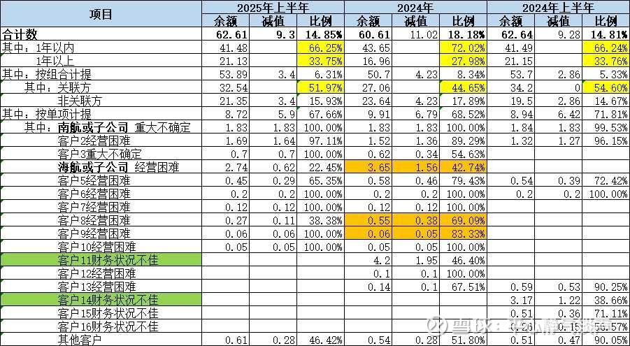 1.乍一看像事实:“二零二五年上半年信用减值损失为人民币- 176.5百万元,主要是部分客户的回款情况进一步改善,应收账款坏账准备余额较二零二四年末有所减少所致。”应收账款余额比年初数增加2亿元,账龄1年以上占比增加约6个百分点,总体计提比例却减少3个多百分点,同比少计提了1.28亿元。而且中航信的应收总量大(60亿左右),回收差(1年以上超过30%),关联方占比高(50%左右),差生被怀疑作弊也是正常。