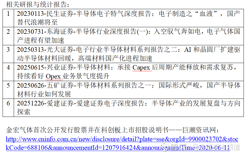 总的来看,需求端的高景气与国产替代趋势形成共振。下游扩产带来量的增长,技术进步带来质的提升,而国产替代则赋予本土企业份额跃升的历史机遇。未来几年,只要国内半导体和新兴产业投资保持强劲,电子特气需求规模将持续扩张,而国产厂商有望分享更大的蛋糕。