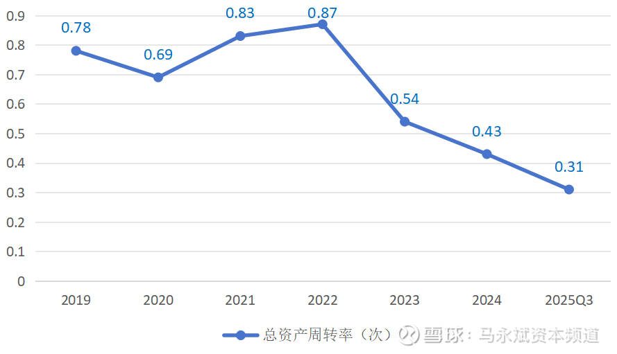 2023-2024年,受宏观环境和公司资本开支增长影响,总资产周转率分别降至0.54和0.43次。这主要是因为公司近两年新建生产基地和设备投入使资产规模扩大,而半导体行业景气下滑导致收入暂未同步增长所致。
