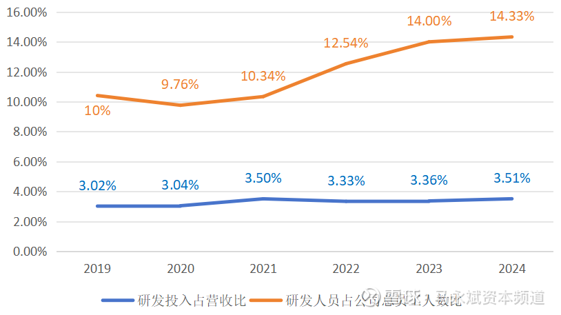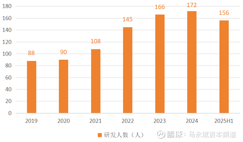 这一投入强度相较动辄10%以上研发费率的半导体材料企业并不算高,但考虑到特种气体行业技术迭代速度相对适中、规模效应更加重要,华特气体的研发投入水平基本符合行业特征。在研发团队上,公司持续加强研发队伍建设和技术积累。2019年公司研发人员88人,占员工总数的10.4%,到2024年研发人员增至172人,占比提升至14.3%。