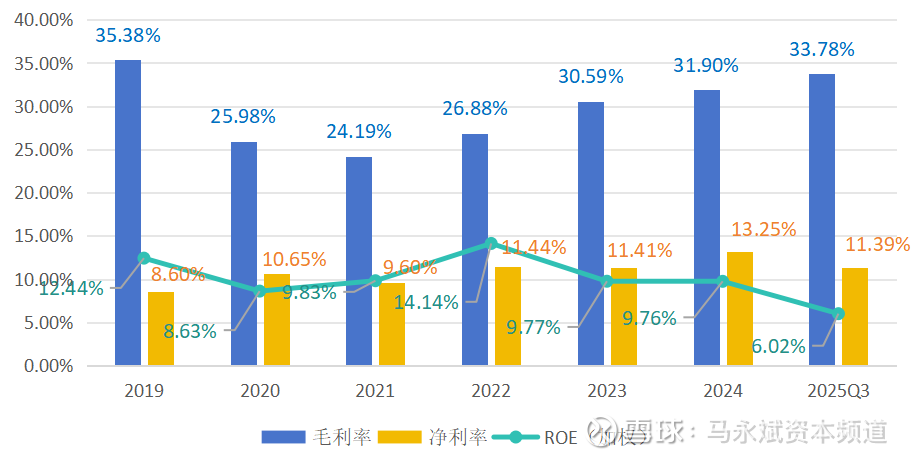 另一方面,加权净资产收益率(ROE)呈现先降后升再回调的趋势。2019年ROE为12.44%,2020年因募资扩股及盈利增速放缓降至8.63%,随后盈利高速增长推动ROE在2022年达到14.14%高点,2023-2024年回落至约9.8%。总体来看,公司上市以来ROE大多维持在两位数水平,体现出较强的股东回报能力。