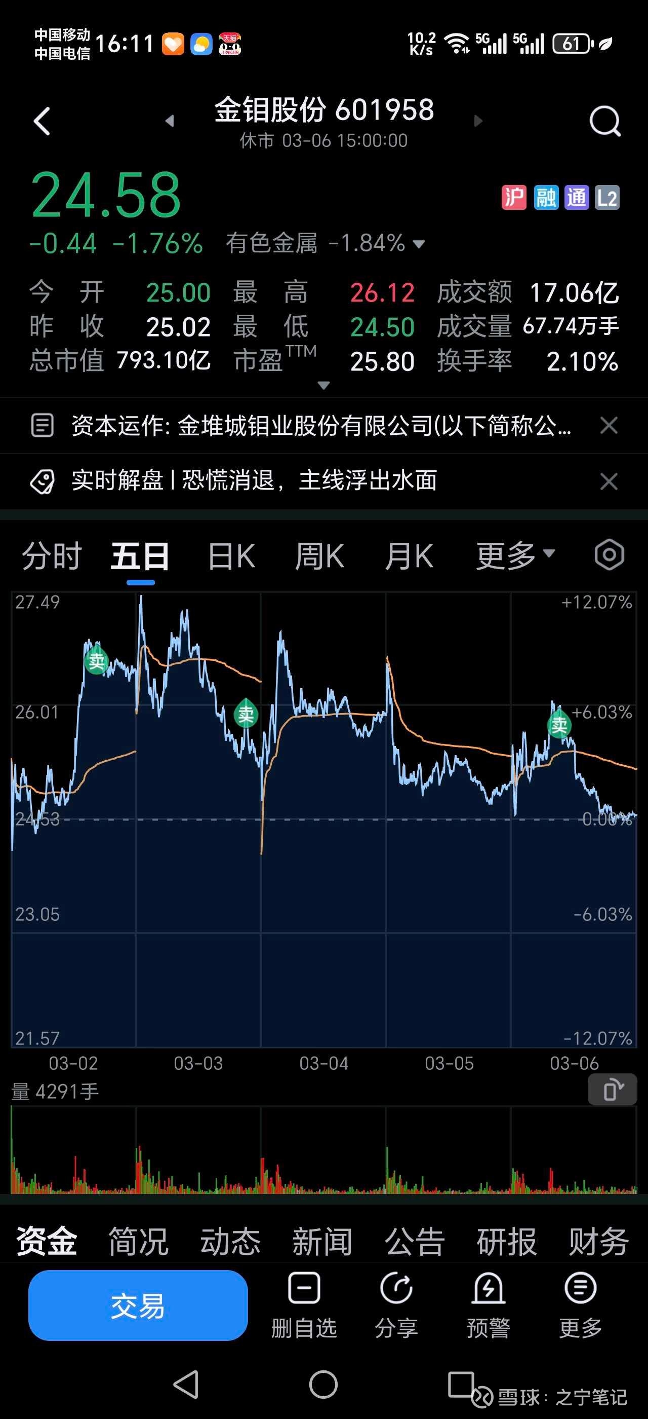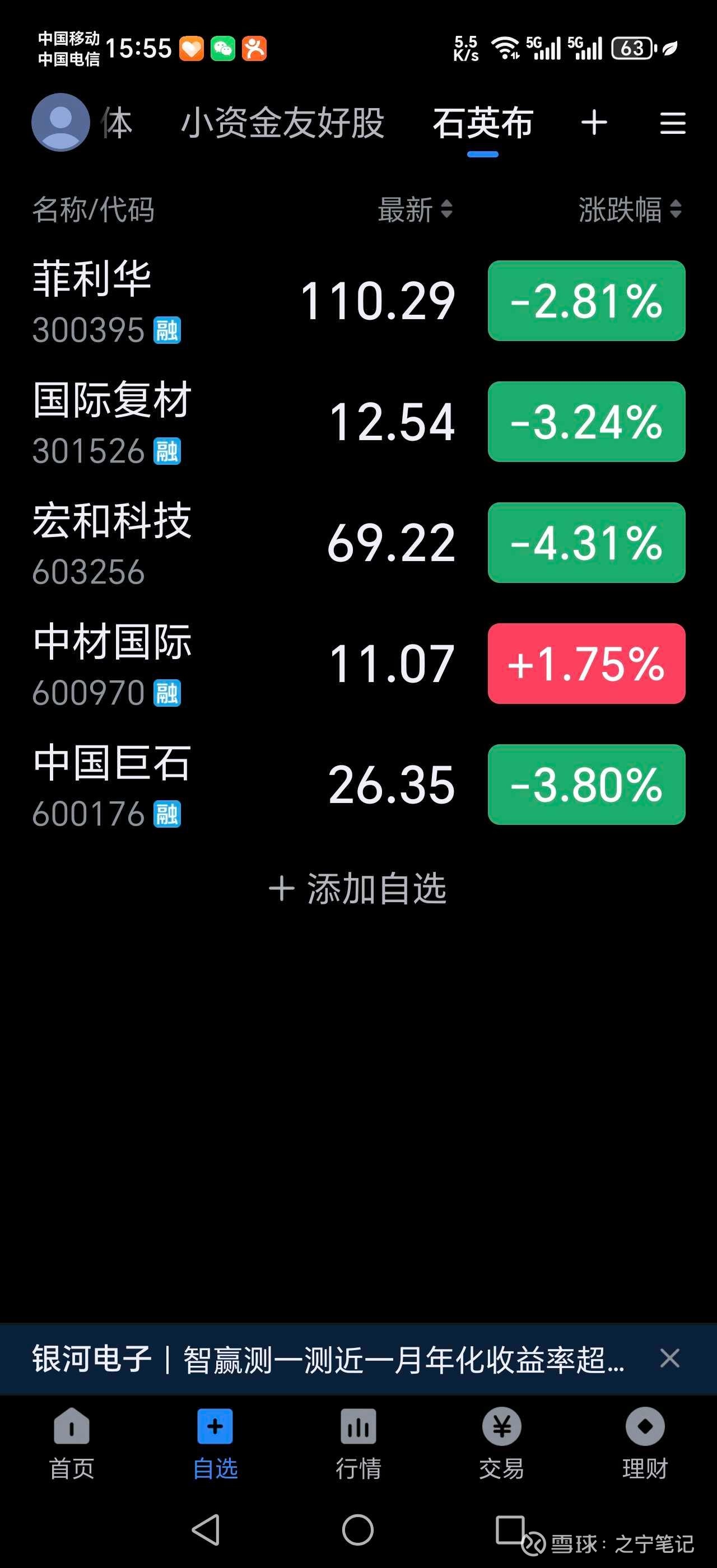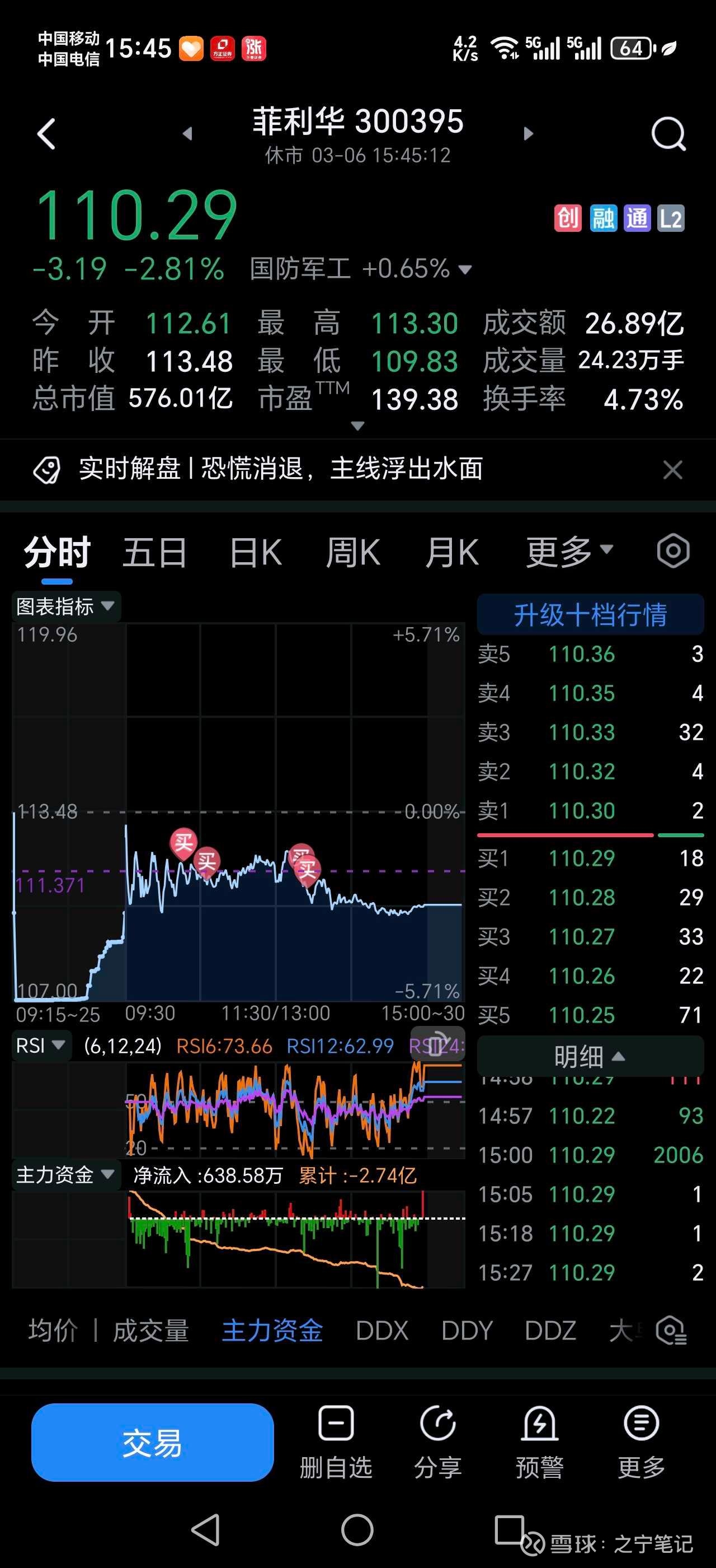 电子布这个赛道标的,控制在个人仓位上限5%之内,而且是在相关赛道中轮动。今天在抛出金钼股份资金,进入电子布菲利华。