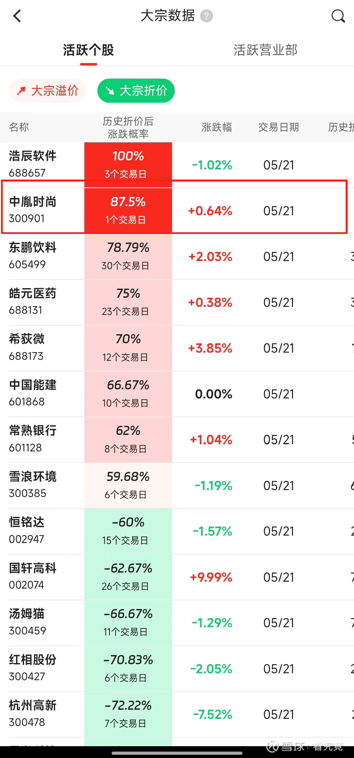 数据表明,中胤时尚历次折价交易后,股价在多个交易日内高概率上涨!5月21日,该股份以14.71%的大额折价成交82万股!开盘大涨,初步印证该规律!同时也印证游资通过折价筹码快速启动行情的模式!$中胤时尚(SZ300901)$