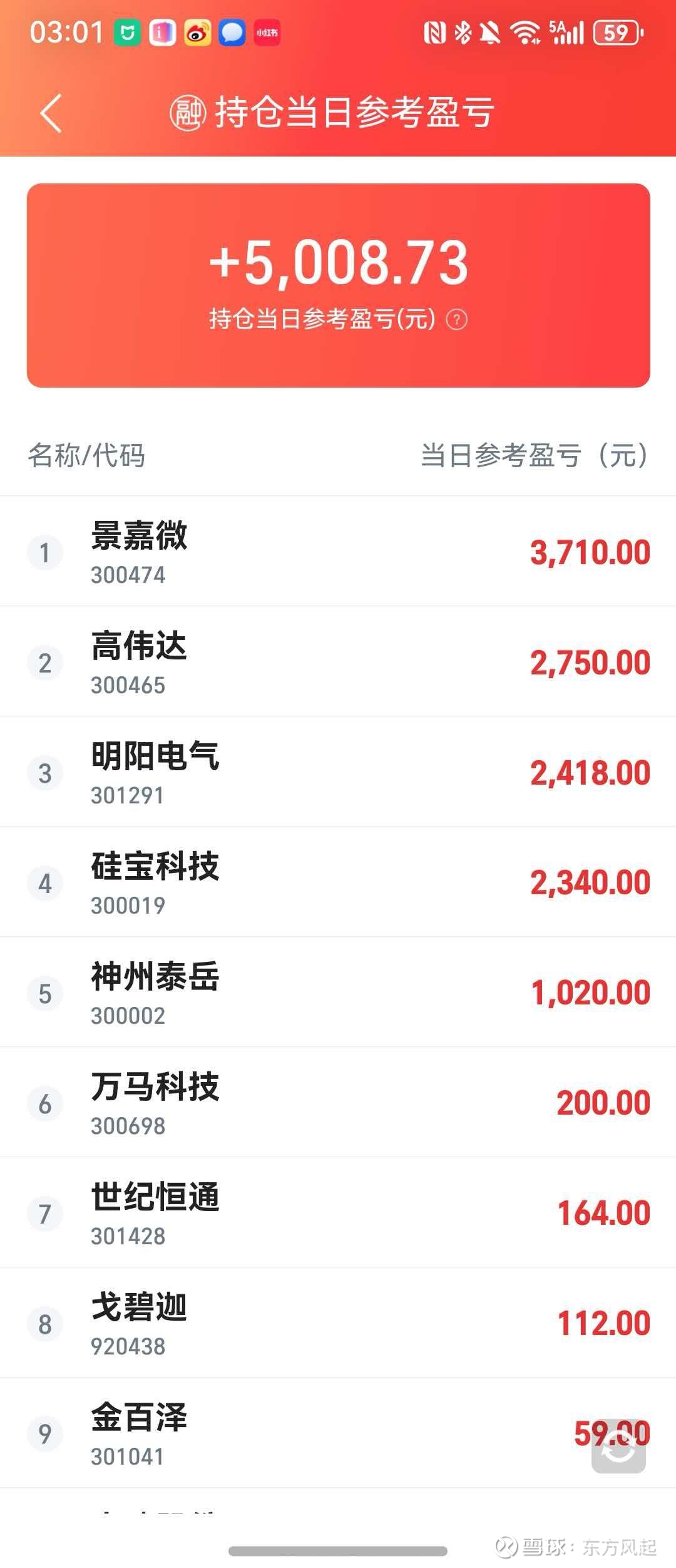 今日盈利:5000元。