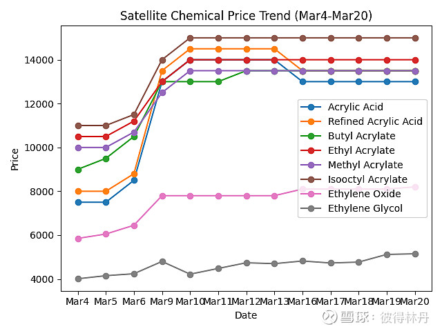 另一边,C2链继续走强,环氧乙烷和乙二醇仍在抬升,说明行情已经从丙烯酸链扩散到更广的烯烃体系,属于从单点行情走向板块行情。