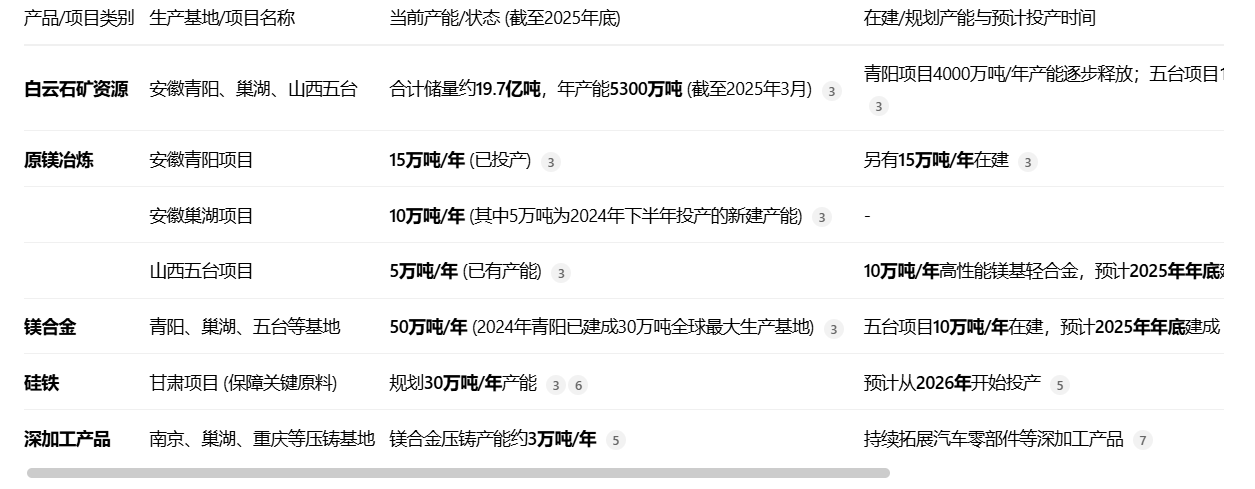 简单梳理一下宝武镁业的产能: