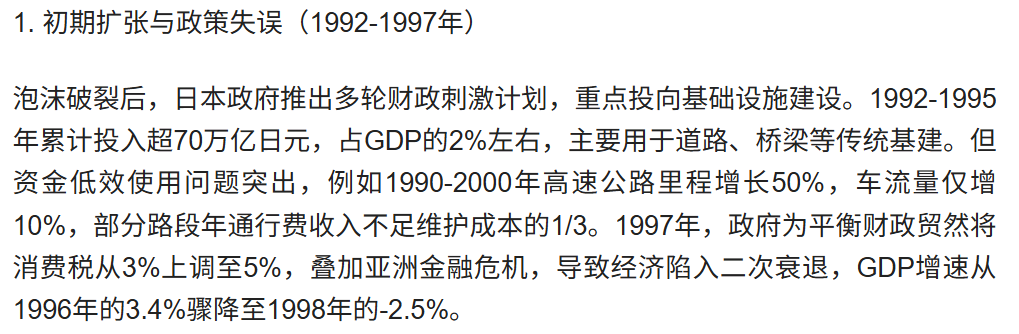 我在网上找到了当时政策的总结,就是房地产见顶之后,日本推出了规模巨大的公共投资计划,就是我们熟悉的基建,用来对冲房地产下滑。这就是水泥产量在高位维持了8年的原因。
