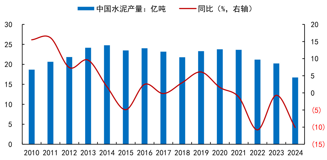 我们产能见顶是24亿吨,21年房地产见顶之后,我们没有类似日本那样推出大规模的基建政策,水泥产量旋即下滑,目前为16亿吨。结合日本腰斩的情况,我们水泥需求可能会在12亿吨见底。