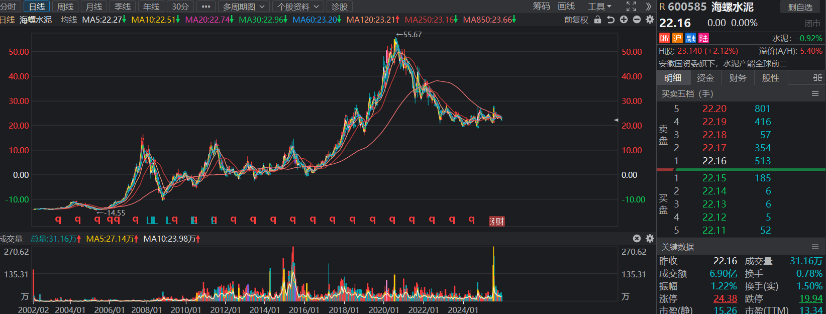 和太平洋水泥类似,也是顶部下来腰斩的状态。结合太平洋水泥腰斩之后再多次腰斩的经历,海螺水泥的底部大概率不在这里。